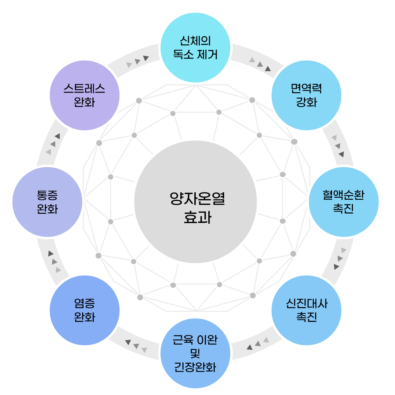 이러한 작용은, 각종 질병의 원인이 되는 미생물을 없애는데 도움이 되고, 모세혈관을 확장시켜 혈액순환을 원활하게 하는 동시에 세포조직의 생성에 도움을 줍니다.