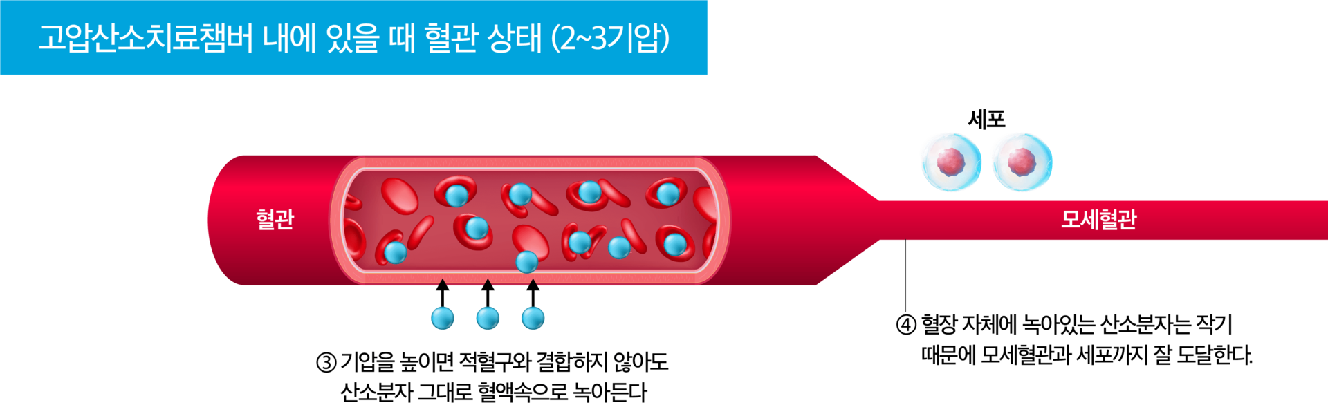 혈액 속에 다량의 산소가 체내의 혈액 속에 녹아들게 하여