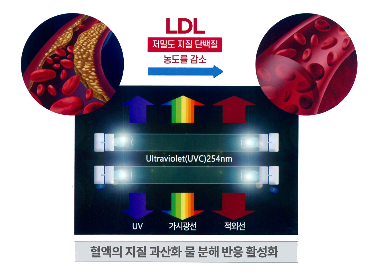 254nm의 자외선을 석영 관을 통해 일정량의 혈액에
